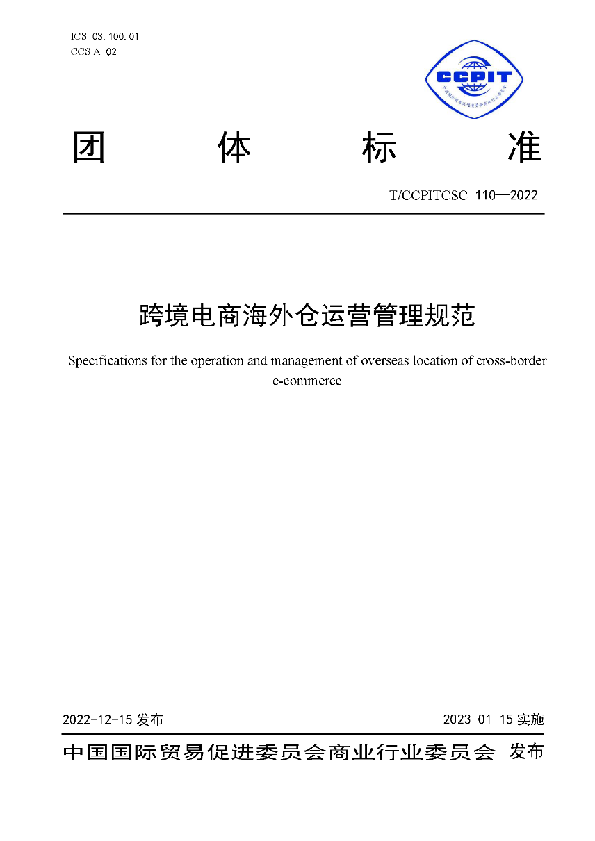 2022年12月15日,由我司联合起草的“跨境电商新业态新模式运营管理规范”系列三大标准之一的《跨境电商海外仓运营管理规范》(T/CCPITCSC 110—2022)正式发布,计划于2023年1月15日起实施。另外两大标准分别是《跨境电商独立站运营管理规范》、《跨境电商平台店铺运营管理规范》。三大标准将在全国团体标准信息平台(http://www.ttbz.org.cn/)正式发布。