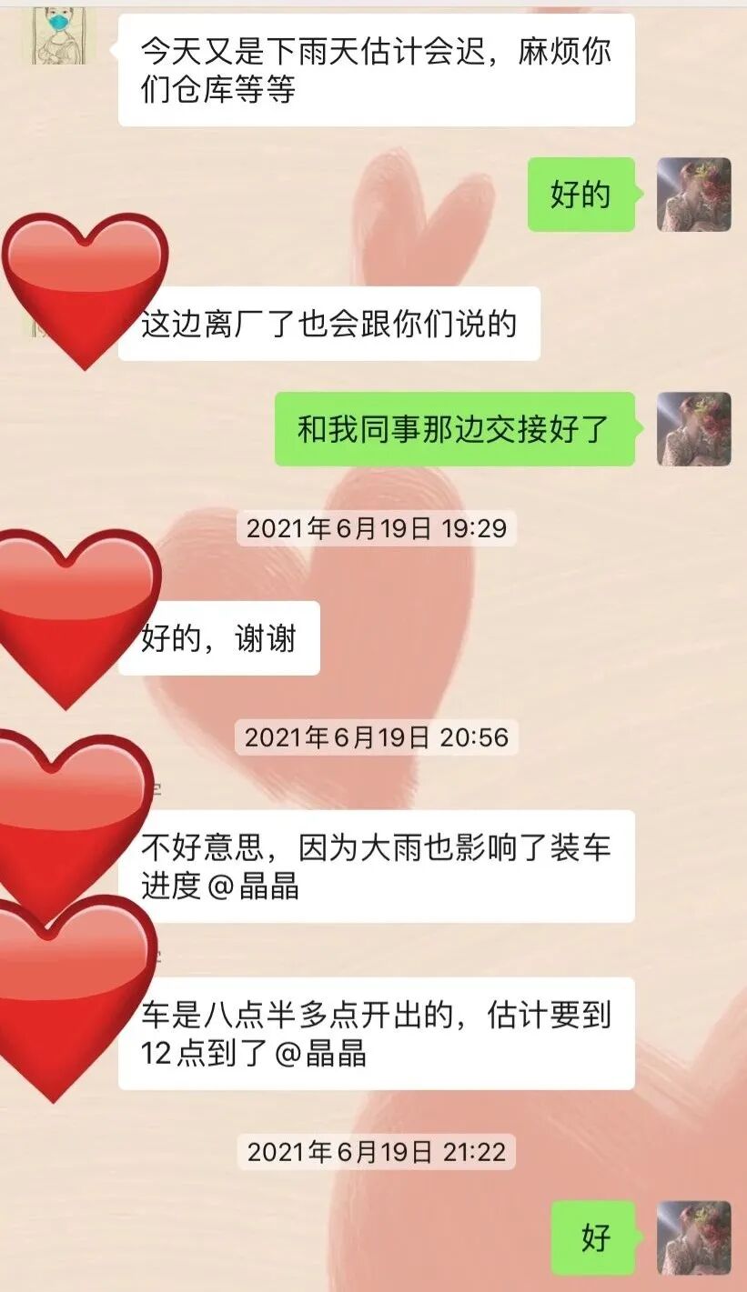 客户经理晶晶说:“感谢自己的每一个客户朋友,我的每个客户都是一位盖世英雄,能够认可我的工作,并信任的把货交给我,这就是对我最大的鼓励!晶晶会一直默默努力着!”