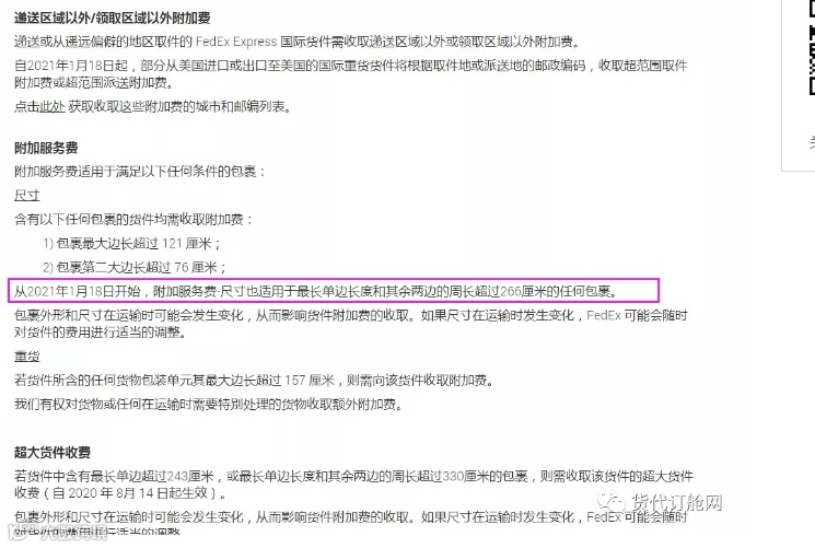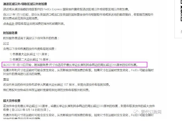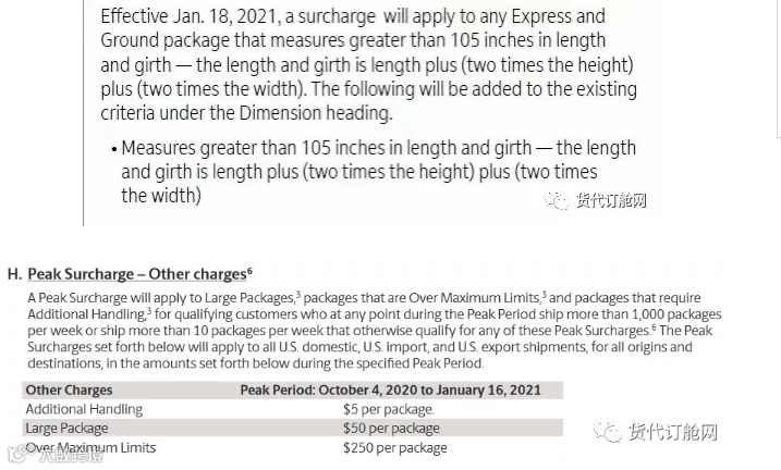 新增AHS:长+2*(宽+高)超过105英寸也就是265cbm了;