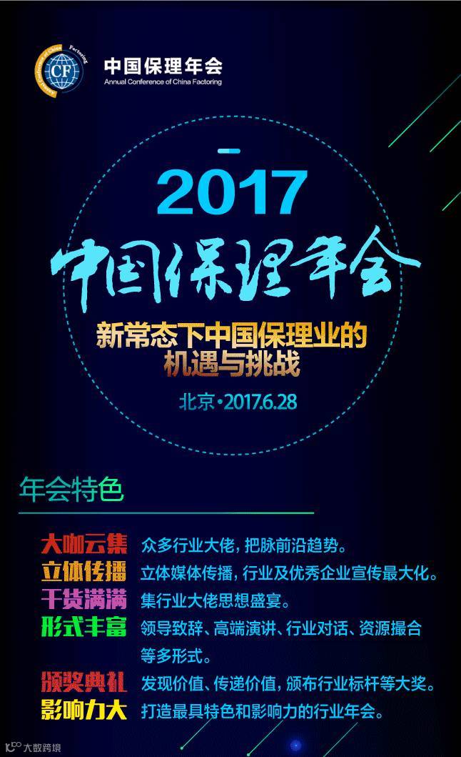 《贸易金融》杂志、中国贸易金融网与相关机构拟举办2017中国保理年会。将邀请相关国家部委领导、银行业领导、商业保理领导、专家及企业家代表就中国保理业务发展趋势、新机遇等问题展开研讨。年会的举办将在中国保理领域,形成一个有趋势分析、有案例分析、有权威解读、有服务手段的高端商务交流平台,希望各方积极参与支持。