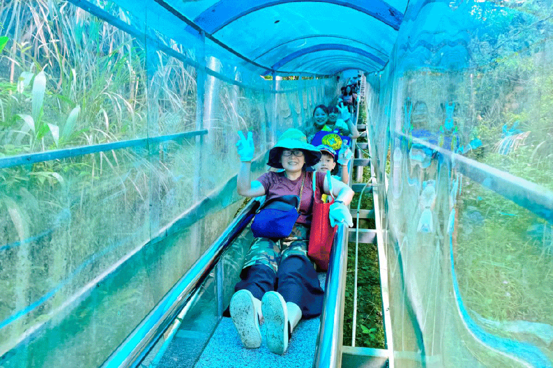 休息结束,下午的活动能量升温,峡谷穿越、高空滑索、奇幻世界、高空玻璃桥,每个项目都是一次挑战与成长的历练。孩子们在玩乐中学会勇敢,体验团队合作的重要性;同时也寻求父母的帮助,在陪伴中收获快乐与成就感。