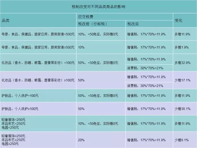 税改后,小于50元税费的商品没有免税了,80%的商品都需要增加11.9%的税额,也就说涨价了。