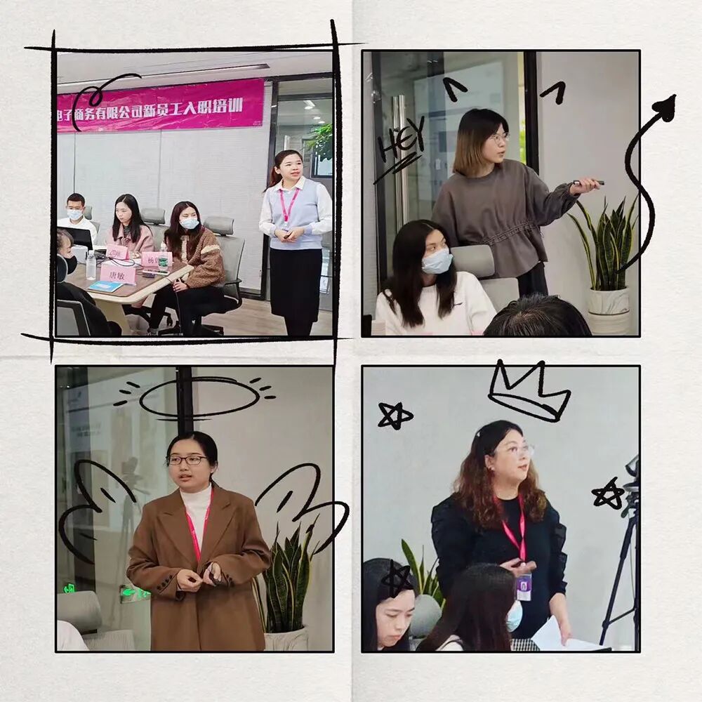 时颖总经理助理施雅君为新员工介绍跨境电商行业知识,结合企业文化、业务模式及未来展望,让新员工迅速了解未来发展方向;产品开发员黄仁爱就公司目前产品分类、开发流程、品牌化趋势进行了介绍,让新员工对公司产品有了更深认知;人才发展与培训经理王真如、人力专员张晓玲分别对公司基础制度及规范,系统操作指引进行了讲解,让员工更快融入公司生活。