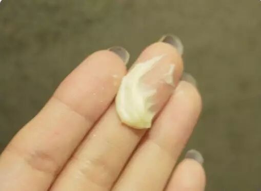 发蜡一般分为三类:水性发蜡、油性发蜡和凝土发蜡。水性发蜡主要用来打理毛糙的发丝,同时提亮头发的光泽度;油性发蜡主要用来维持已经做好的发型,较适用于有一定弯曲度的波浪式卷发;凝土发蜡主要用来打造具有空气感的蓬松发型。所以一般男生的短发造型只要用上水性发蜡和凝土发蜡就可以了。当开始准备造型的时候,先取用凝土发蜡约一节手指的大小(见下图),在手掌里均匀搓开。