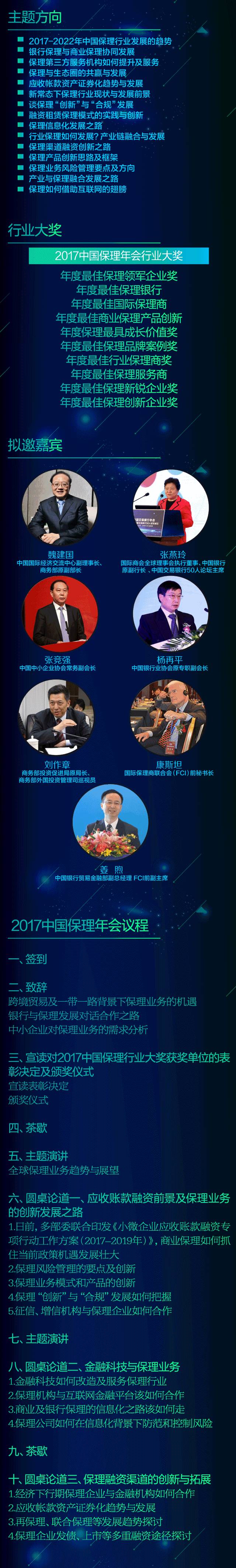 年会力邀到多位重量级嘉宾将围绕“跨境贸易及一带一路背景下保理业务的机遇,银行与保理发展对话合作之路,中小企业对保理业务的需求分析,全球保理业务趋势与展望”等主题进行精彩演讲。