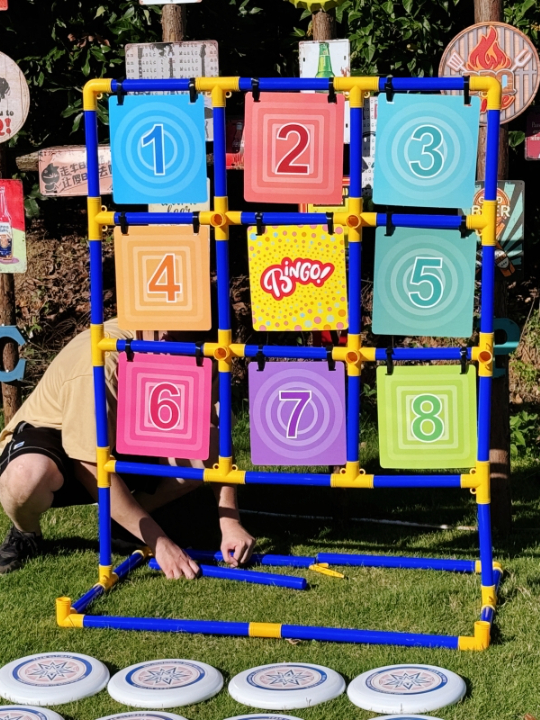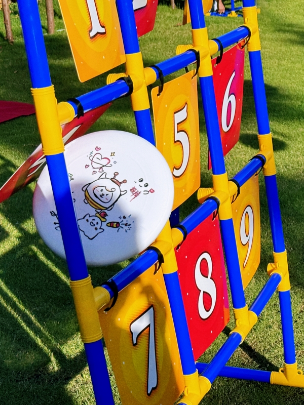 ▲飞盘九宫格:目标区域被分为九个小方格,飞盘投掷到方格中,并尽可能多地命中得分区域来获取分数。