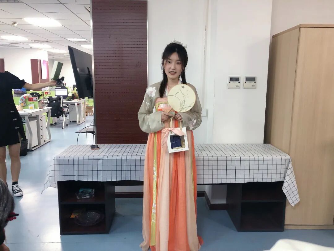 七夕节当日,大家身着汉服出席,公司特别准备了“最美汉服”投票选举,参赛照片现场拍摄,采用线上投票的方式,前三名将获得公司准备的精美礼品。