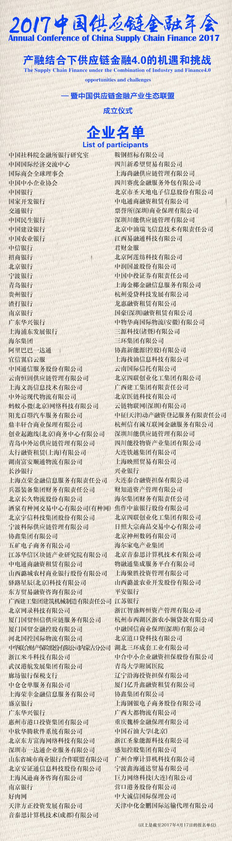 2017年4月21日,北京,2017供应链金融年会举行倒计时,火热气氛即将引燃。中国供应链金融领域最有分量的高端商务交流平台,聚焦产融结合下的供应链金融4.0,将搭建起一个创新、开放、协同、赋能、共享的供应链金融生态平台。如果您从事供应链金融有关行业,关心供应链金融,想学习、开拓、交流,本次会议绝对不容错过!小伙伴们,请抓紧最后时间报名参会吧