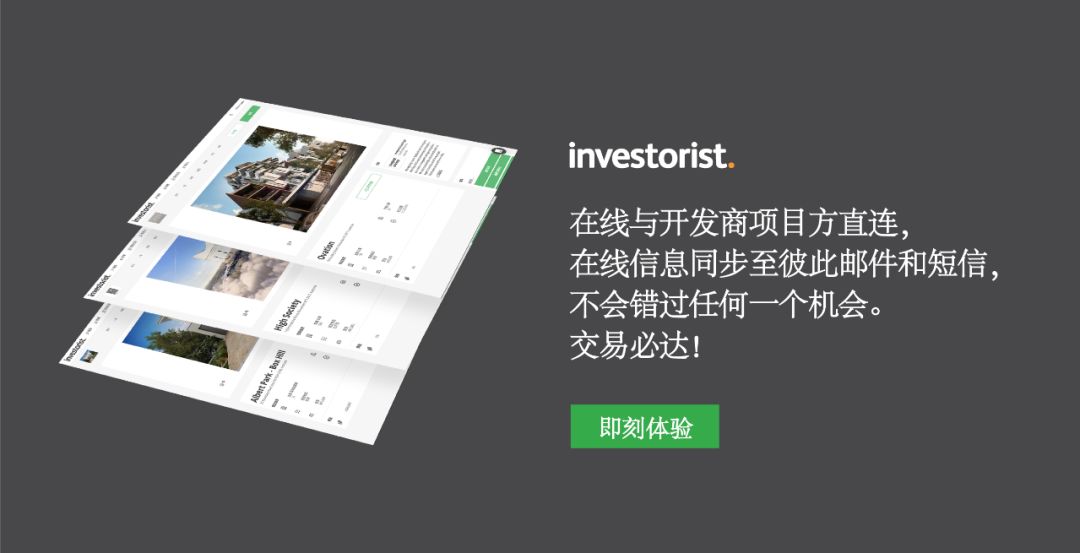 如果你从事海外房产销售,熟悉澳洲市场,希望本文能让你重拾对澳洲市场的关注和兴趣。总部位于澳洲墨尔本的investorist.com (VPN直接访问,或访问国内站点:cninvestorist.com) 通过位于澳洲、欧洲、美洲的办公室第一时间上线当地市场的最新楼盘, 帮助开发商和中介(均凭用户登录)在线对接项目信息:从搜盘、询盘、到下载项目信息和合同等,满足你销售业务的所有环节。