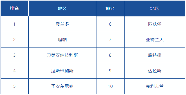 奥兰多(都会区)位于美国东南角佛罗里达州,凭借迪士尼世界和环球影城旗下的多座主题公园成为了旅游度假热点。在旅游业之外,奥兰多地区的医药、教育和技术行业也很发达,为当地提供了大量就业机会,吸引了大批人才。