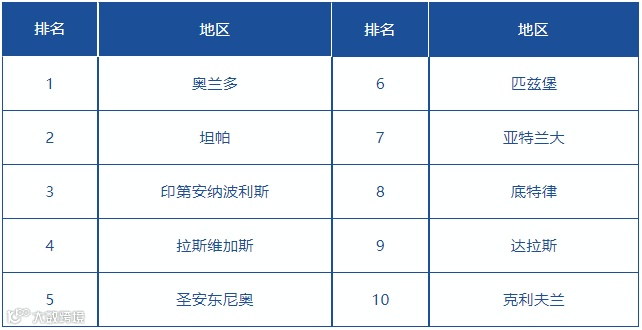 美国有线电视新闻网 CNN 旗下的商业财经频道 CNN Money 根据 Zillow 的首次购房买家指数(First Time Home Buyer Index)发布了最适合首次购房买家的十个美国都会区,奥兰多、坦帕均上榜,并排名第一、第二。