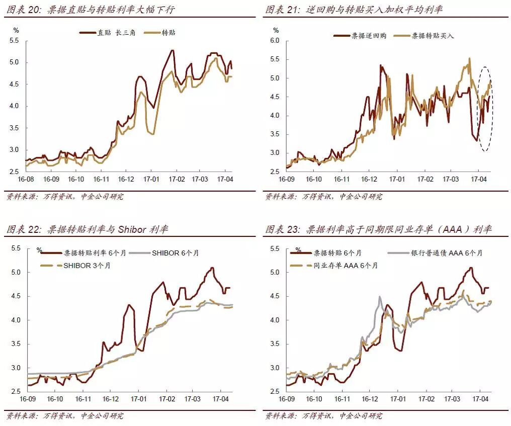 (3)银监会目前加强了监管力度,但一只手硬,另一手应该软,央行货币政策并没有进一步收紧,转为观望为主。上周央行公开市场净投放规模为年初以来最高,本周央行也维持小幅净投放,资金面紧张对债市的影响下降。短期关注情绪能否恢复稳定,如果叠加4月经济数据偏弱,那么债市收益率或将迎来一定幅度的交易性机会。从我们最新的债市调查来看,虽然投资者策略仍以谨慎为主,但随着风险逐步释放,投资者也并不是很悲观,大部分投资者对10年期国债的高点看到3.5%-3.6%,上行空间有限。但是随着金融杠杆的放缓和同业业务的收缩,信用风险可能会有所上升,对信用债尤其是低评级信用债仍宜采取规避型策略。