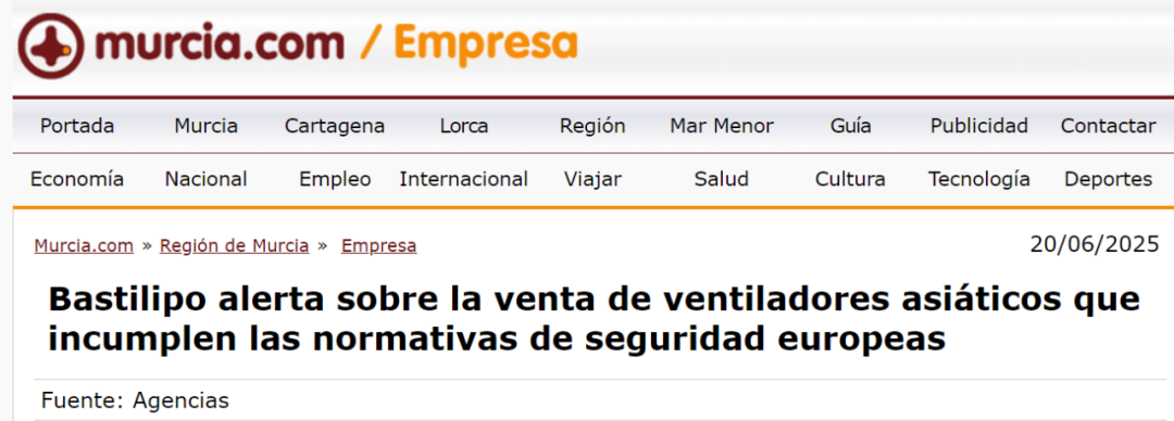 (西班牙制造商Bastilipo警告:亚洲产电风扇不符欧盟安全标准)