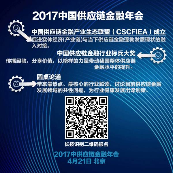 2017年4月21日,2017供应链金融年会在北京举行,大咖云集。聚焦产融结合下的供应链金融4.0。如果您是供应链金融相关从业者,供应链金融价值链的一环,如果您关心供应链金融、如果您想学习、想开拓、想交流、想宣传、想为未来企业发展注入创新活力和寻求合作伙伴。这样的盛会,值得你的参与。