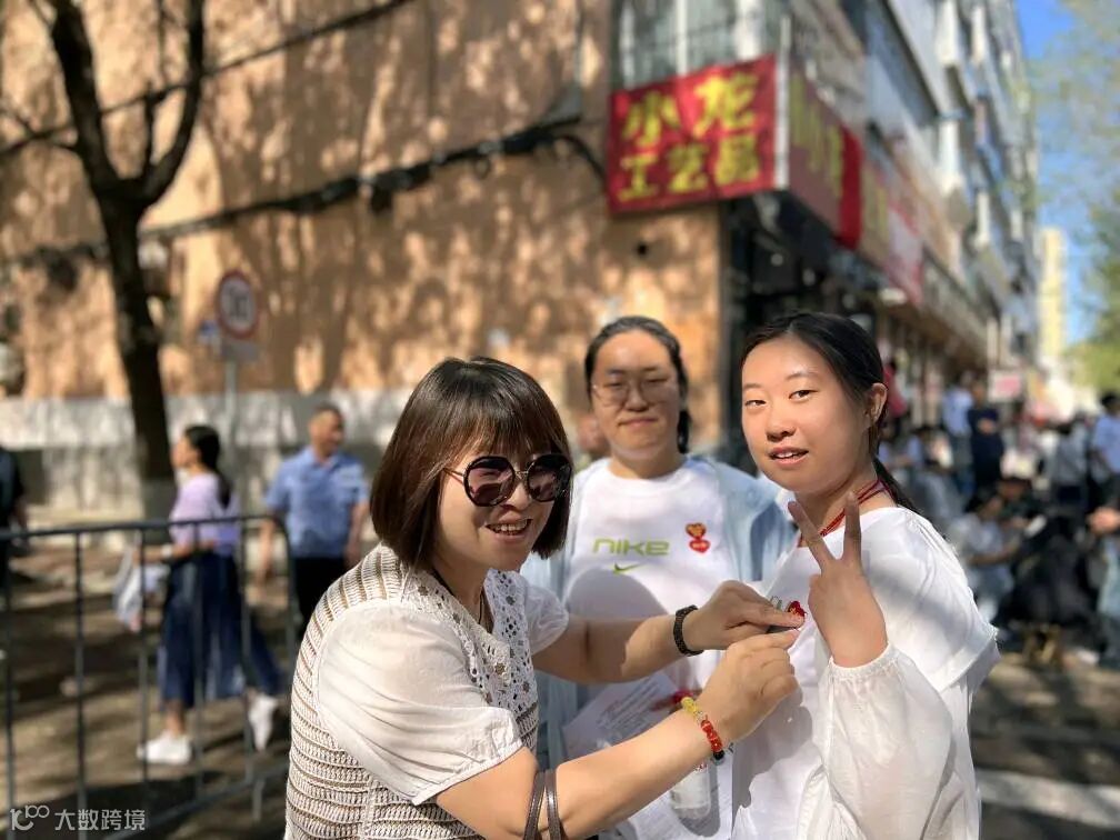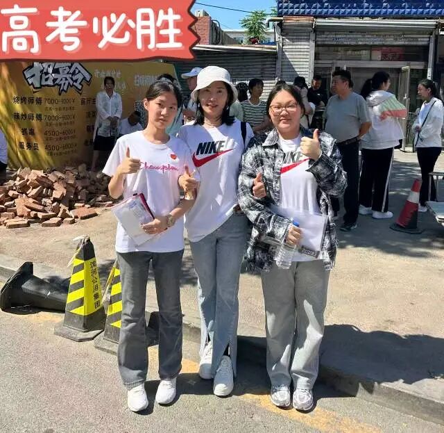 考点外,送考老师们手中多了一份特别的“秘密武器”——五彩缤纷的“高考必胜”小贴纸,“来,贴上这个,一定能超常发挥!”校领导小心翼翼地将一枚印有“高考必胜”的红色小贴纸贴在学生衣服上,动作轻柔得像在为即将出征的战士佩戴勋章。周围的老师们也纷纷俯身为学生贴上“逢考必过”“锦鲤附体”等创意贴纸,有的还特意贴在学生的笔袋上,笑称“这是幸运符,带着它进考场,答题如有神助!” 老师们,用温暖的手势传递信心,以亲切的话语鼓舞士气。班主任们轻抚学生肩膀,用三年积累的默契化解紧张;科任教师们各展所长,将学科特色化作暖心祝福。"语文组愿你们文思泉涌""数学组祝你们思路清晰",此起彼伏的叮咛声在考场外汇成最动人的交响。