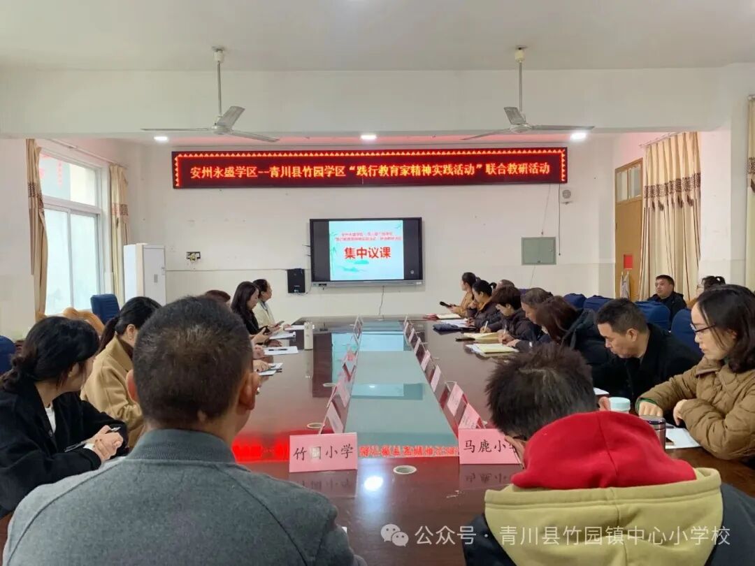 12月4日,绵阳市安州区永盛学区、绵阳市刘文菊名校长工作室一行到青川县竹园镇中心小学校,与竹园学区各校40余名学科教师共同开展了“践行教育家精神 引领高质量发展”联合教研活动。