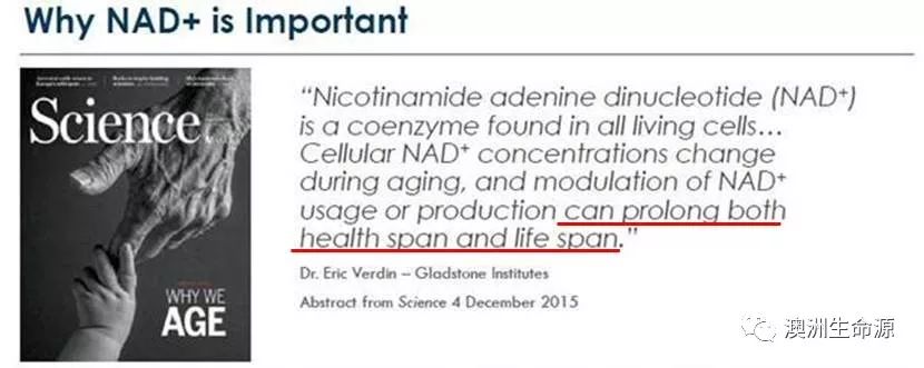 “辅酶I是存在于细胞内的辅酶,它的含量随着年龄的增大而变化,调节辅酶I的含量可以同时增长健康寿命和整体寿命”!
