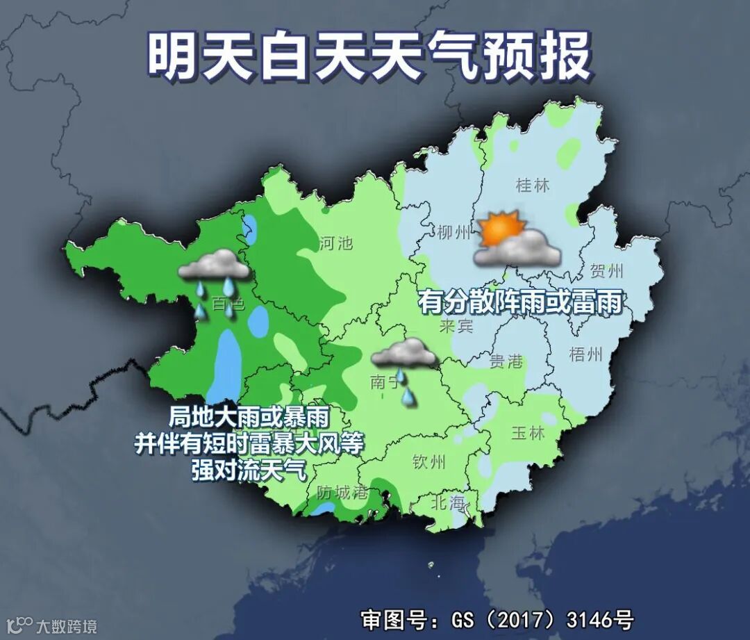 和河池、南宁两市西部将有大雨