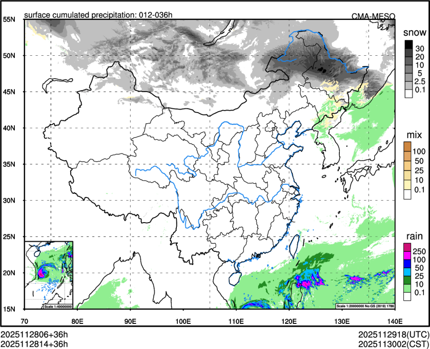 根据中央气象台的预报,新疆阿勒泰、内蒙古东北部、黑龙江大部、吉林东部、辽宁东北部等地会有小雪或雨夹雪。其中内蒙古东北部、黑龙江中西部等地部分地区有中到大雪,局部甚至会有暴雪(10-12毫米)。所以这波强降雪还是集中在东北和内蒙古一带。