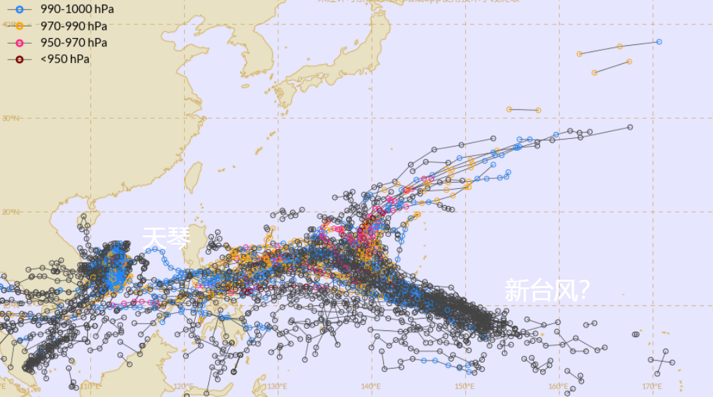 只不过一般来说,这个季节台风很少会影响到我们,因为近海海温已经降到26度以下,不太适合台风维持了。就算有台风靠近,也会很快减弱。所以大家就当多个编号看看就好。只是这次27号台风“天琴”引发了一系列连锁反应,才导致天气形势出现这些变化,平常心看待就好。