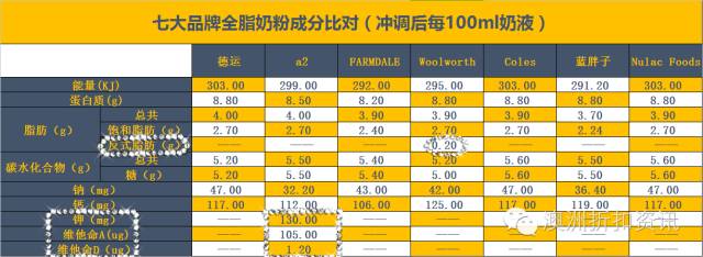 关于营养成分,折扣菌列了一个表格,其实七大品牌奶粉从能量、蛋白质、饱和脂肪、碳水化合物这几个数据看,没有太大区别,从营养成分上来看,a2还比其他奶粉多含钾、维他命A、维他命D,真的上全方位战胜其他各品牌啊!