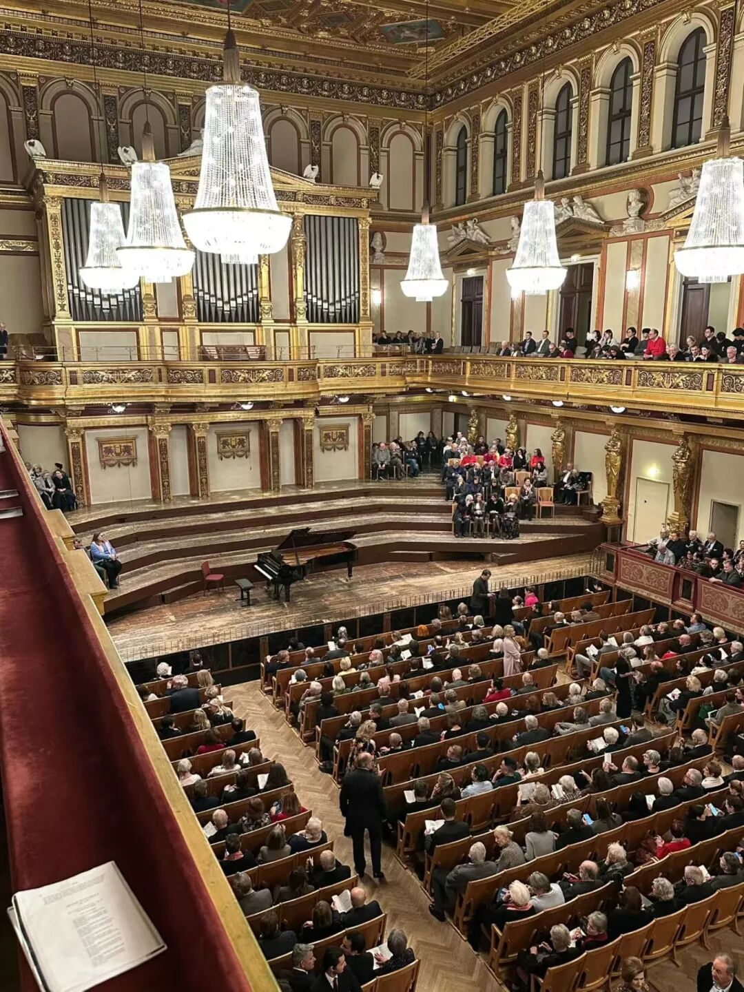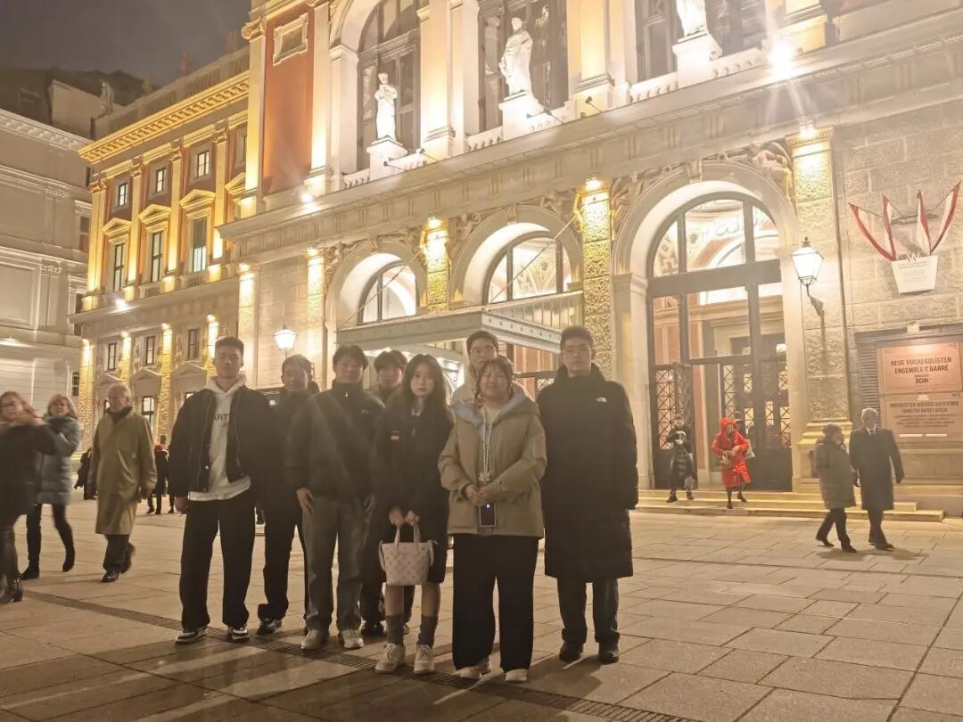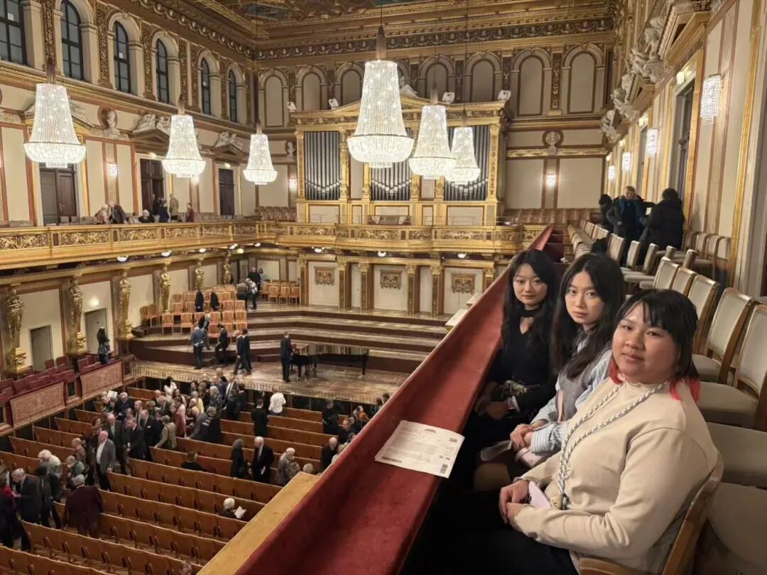 我校计算机与人工智能学院姜昊天同学讲述着他的感悟:“维也纳的暮色刚漫过环城大道,我已站在金色大厅门前。推开门的刹那,鎏金浮雕与暖光交织的静谧扑面而来,红色丝绒座椅的温润、木质结构的沉静气息,瞬间抚平了旅途的浮躁,只剩满心对琴音的期许。当演奏家指尖轻触琴键,第一个音符便撞进心底。那旋律借着大厅绝佳的声学效果,清晰得仿佛琴键就架在耳畔,饱满的共鸣顺着耳膜蔓延至全身,每一次触键都像在叩击心灵。这份纯粹的艺术震撼,无关语言与国界,只源于琴音与心灵的直接相拥,成为我奥地利之行中最珍贵、最难忘的印记。