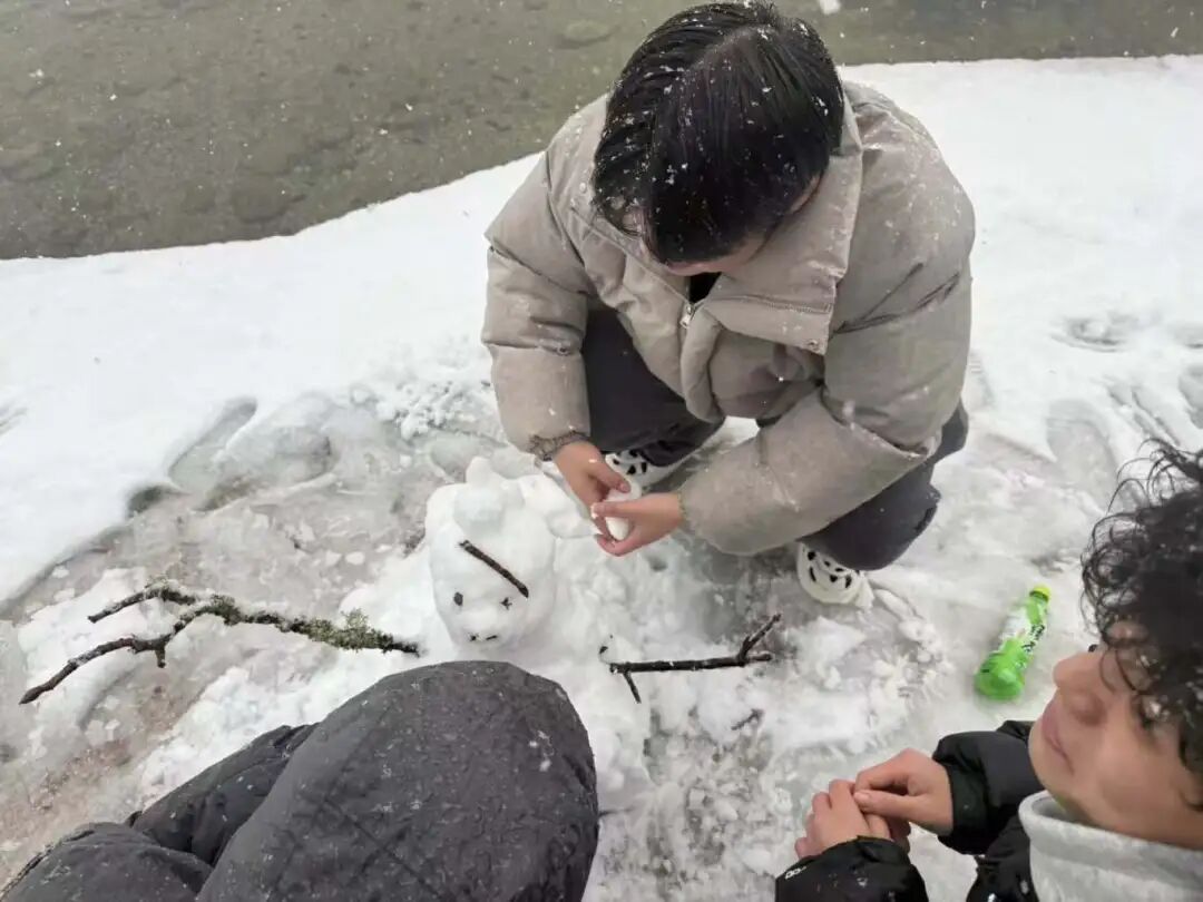 同学们在阿尔卑斯下雪中前行,湖光山色在雪花点缀下展现出别样的美感。这次独特的冰雪体验,不仅是一次自然教育,更是一次意志的磨练。傍晚顺利返回维也纳驻地后,各小组便全心投入,将日间的所见所感,沉淀为小组汇报的灵感与素材。