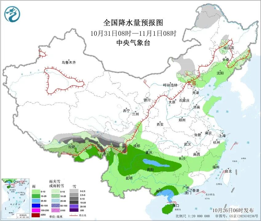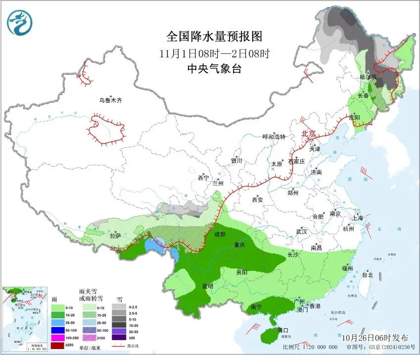 在这一轮冷空气影响下,除了青藏高原地区照常会有雨雪,东北、内蒙古等地也会出现降雪或雨夹雪,其中内蒙古东北部、黑龙江中北部可能出现小到中雪,局部甚至有大到暴雪,这些地方要特别注意。