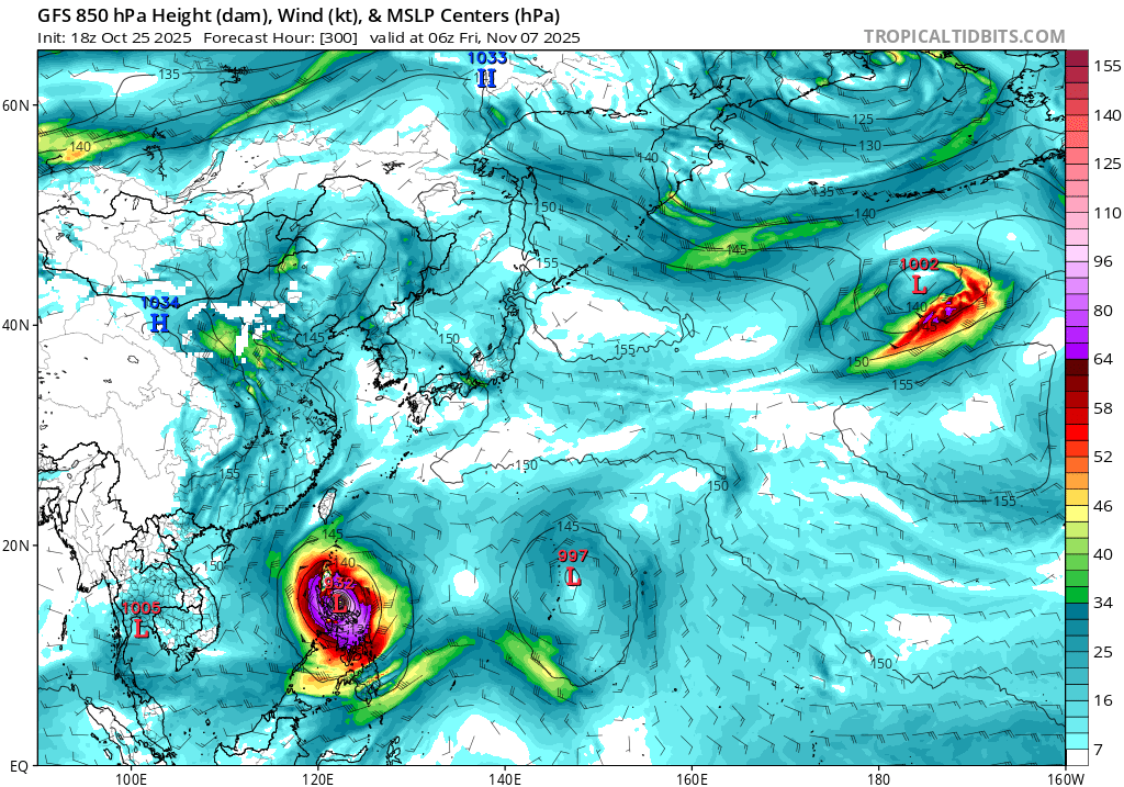 在这之后,GFS还预报11月上旬可能还会有新的台风冒出来,不过时间还比较久,变数还很大。它预测这个系统会朝菲律宾移动,随后可能在南海有所增强,中心气压可能降至961百帕左右,这强度差不多相当于12级台风了,之后可能趋向越南并逐渐减弱。