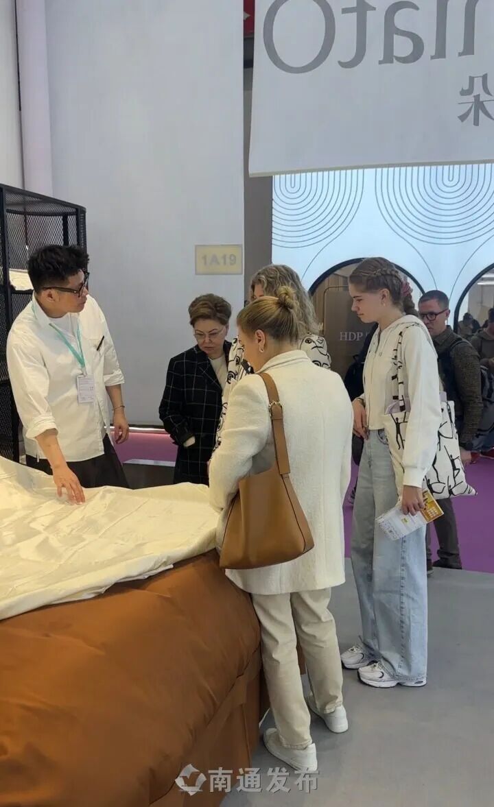 此前,在15日举行的2025第十九届上海之帆经贸(人文)展上,由胡博涵带来的“躲毛毛”家纺四件套,凭借不粘宠物毛的特性成为展会焦点,现场不但挤满参观者,而且收到意向合约订单超百个。