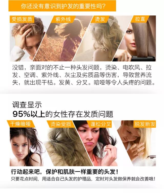 柔顺亮泽:恢复秀发的光泽和柔软。加强头发弹性。