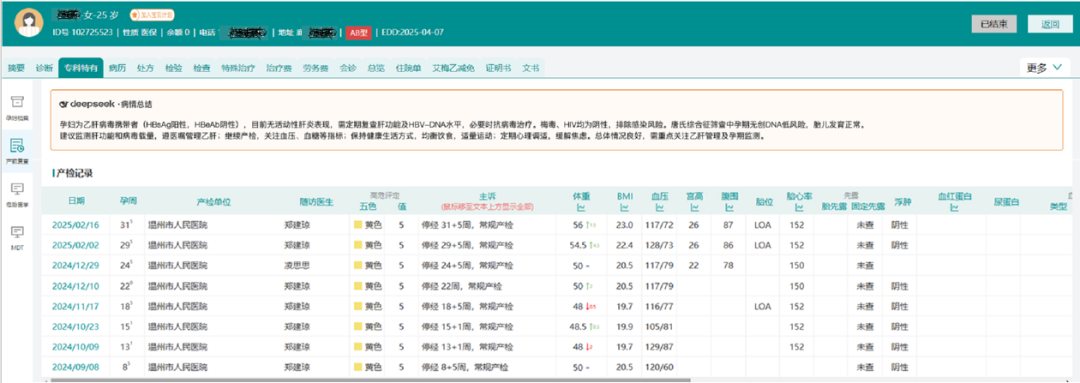 1. 病情一图掌握:AI自动归纳孕产妇就诊数据,生成病情概览提示,帮助医生快速锁定关键信息,避免遗漏。
