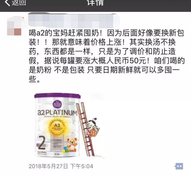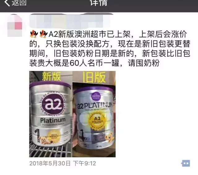 A2公司还趁机推出了新产品孕妇奶粉和新包装。