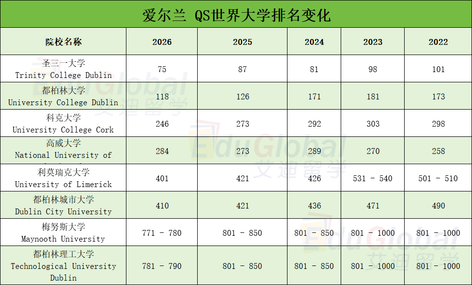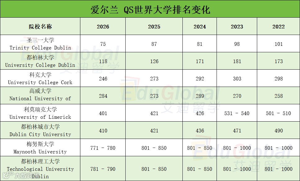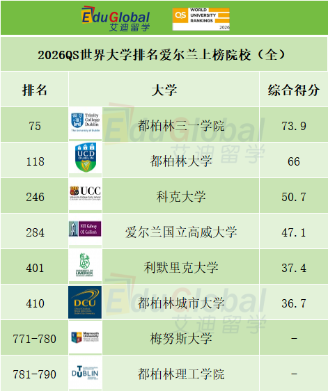 2026年QS世界大学排名重磅出炉!爱尔兰这片留学“潜力股”再次交出亮眼成绩单,整体表现稳扎稳打,亮点频出!多所高校排名显著提升,势头强劲,爱尔兰作为高性价比留学目的地的吸引力持续攀升!