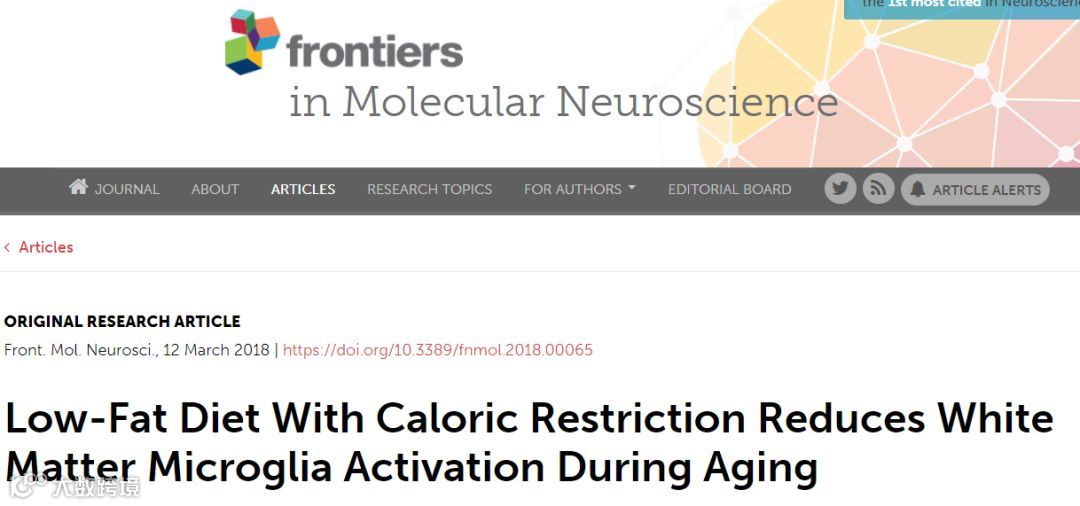3月12日,发表在Frontiers in Molecular Neuroscience上题为“Low-Fat Diet With Caloric Restriction Reduces White Matter Microglia Activation During Aging”的研究证实,“低脂肪饮食”结合“热量限制”阻止了老龄小鼠中小胶质细胞的激活。