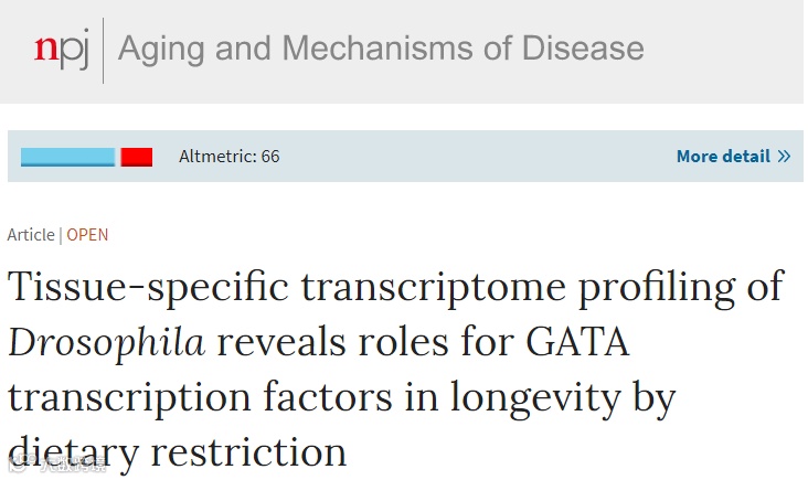4月17日,发表在npj Aging and Mechanisms of Disease上题为“Tissue-specific transcriptome profiling of Drosophila reveals roles for GATA transcription factors in longevity by dietary restriction”的研究中,来自伦敦大学学院的科学家们发现,通过限制一组名为“GATA转录因子(GATA transcription factors,GATA TFs)的蛋白质的活性”能够延长果蝇的寿命。