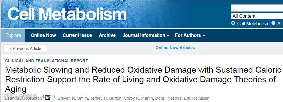 这项题为“Metabolic Slowing and Reduced Oxidative Damage with Sustained Caloric Restriction Support the Rate of Living and Oxidative Damage Theories of Aging”的成果于3月22日发表在Cell Metabolism杂志上。研究发现,热量限制降低了全身氧化应激。而氧化应激水平已被证实与阿尔茨海默症、帕金森病、癌症、糖尿病等疾病有关。