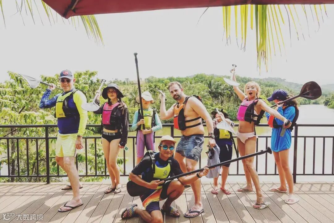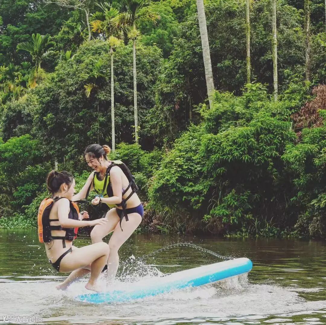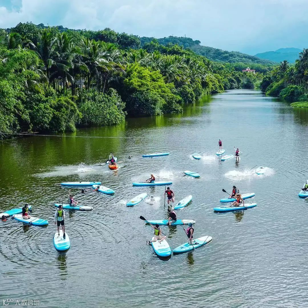 风景如画的兴隆国家森林公园水域,秘境雨林依山傍水,一个独特的野奢户外私享空间【湖中央桨板滑行】在专业教练的带领下,穿梭在原始椰林中。竞赛与趣味相结合,增加团队的凝聚力及协作力~