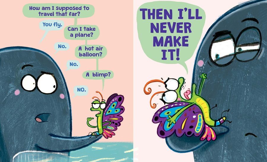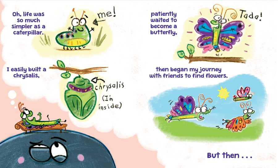 这个故事太适合正在“想放弃”和“快崩溃”的孩子了。作者用一贯夸张又幽默的语言,让这只小蝴蝶说出了我们内心最真实的声音,也用轻松搞笑的对白,把“坚持”的含义讲得轻盈又有趣。