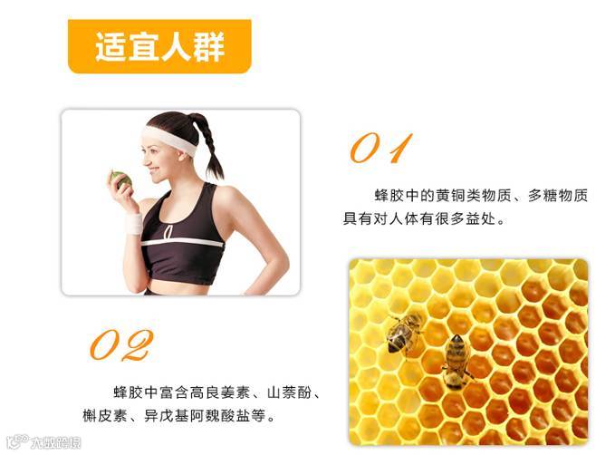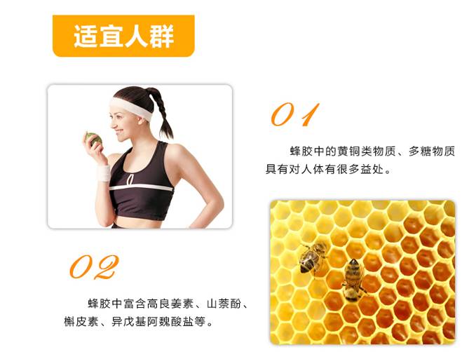 蜂胶最大的功效就是可以消炎、杀菌,抵抗病毒,它对人体的多种病毒性疾病有预防作用,而蜂王浆则是一种高蛋白的高级滋补品,可以增加人类体质,提高免疫力,另外它里面还有大量的激素,可以调内分泌,提高性功能,也可以减少妇科疾病的发生。
