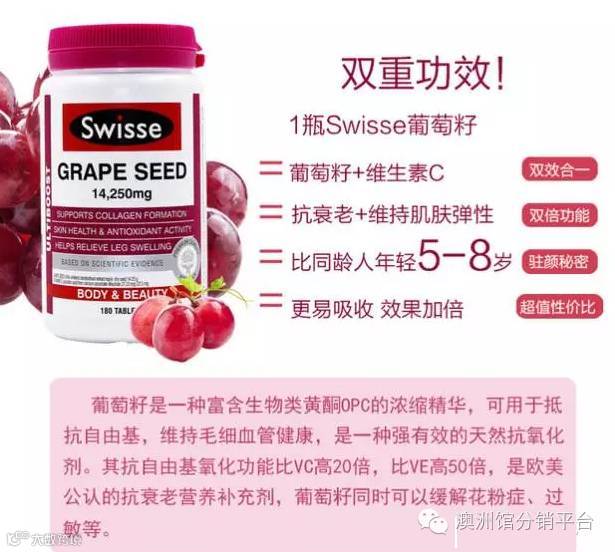 【产品名称】 澳洲swisse grape seed葡萄籽精华+VC血橙双倍抗氧化