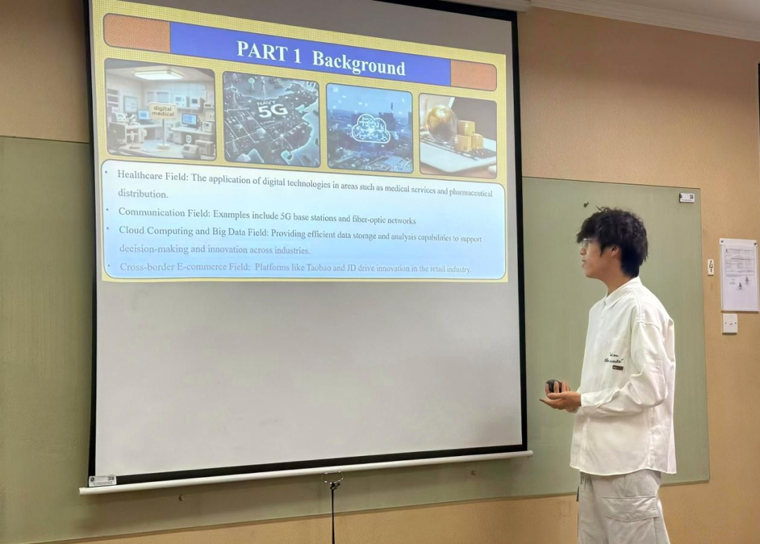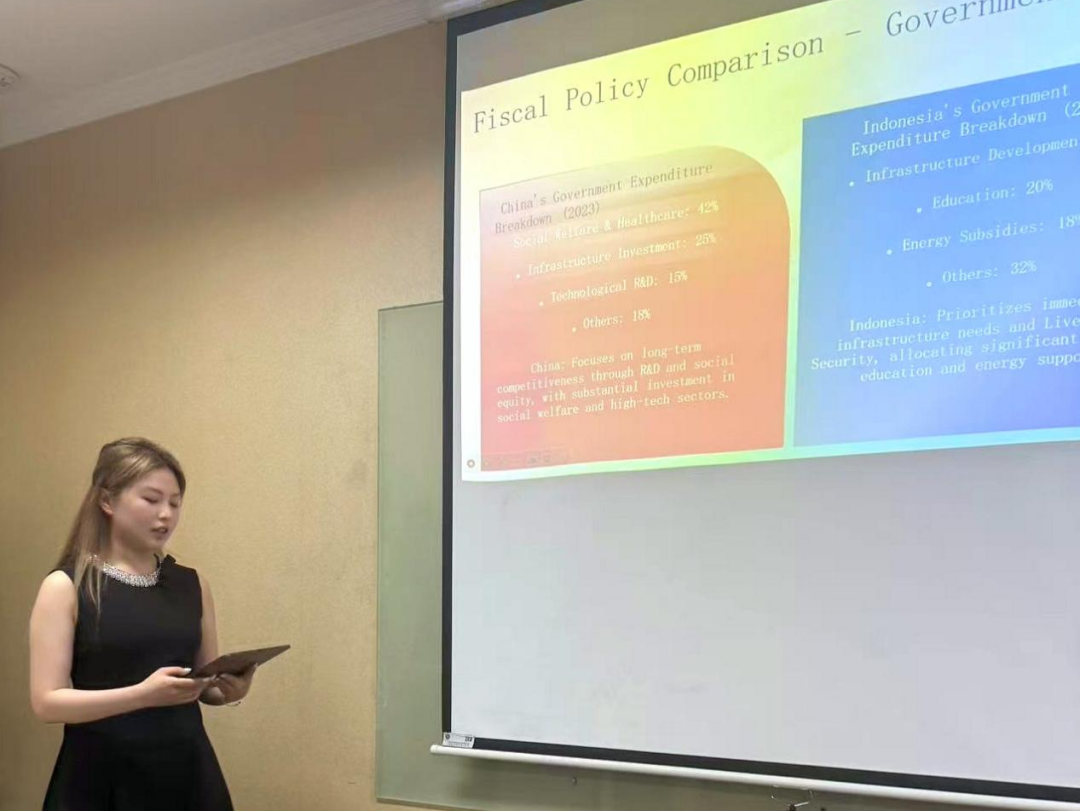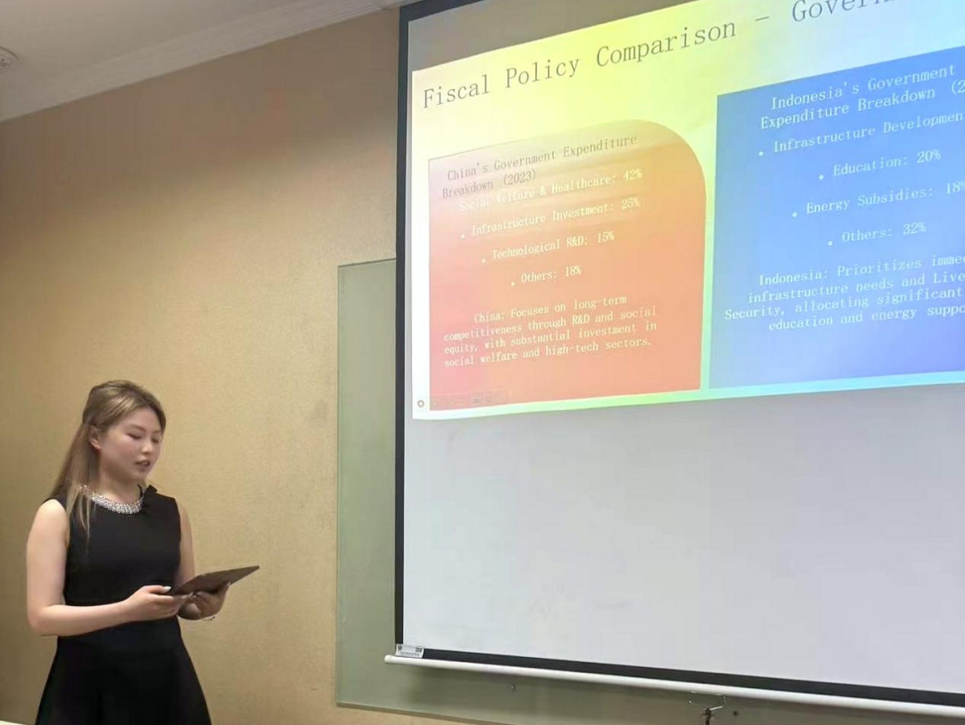 本次四位同学的项目答辩主题为“Digital Economy and Development in China”,他们对比中印尼跨境电商数据,介绍典型合作模式与案例、技术驱动等趋势,分析机遇挑战,深入展现了中国以及印尼在数字经济领域的发展特色与潜力。他们在梳理数据、剖析案例的过程中,深化了对中印尼数字经济差异的理解,也锻炼了跨文化数据分析与问题拆解能力。这场答辩不仅是知识输出的舞台,更让他们在实战中提升了学术表达与逻辑构建能力,为未来的学习旅途积累了宝贵的经验。