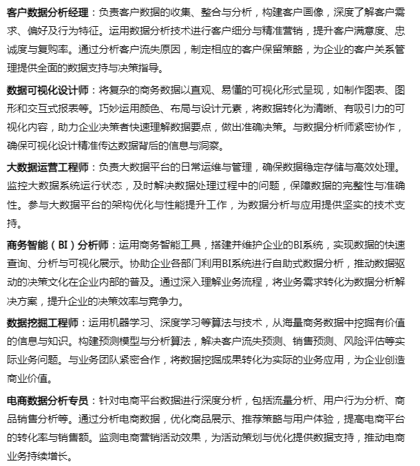 六、商务数据分析与应用专业就业领域