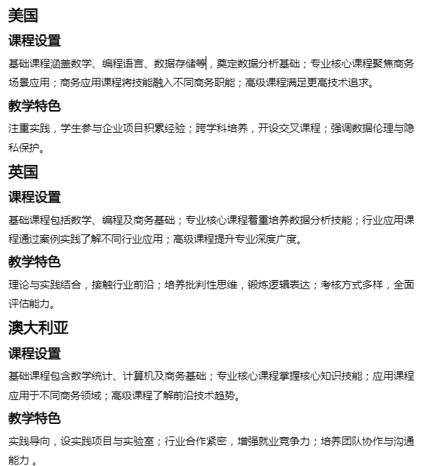 以下是商务数据分析与应用专业在国外典型的课程体系介绍: