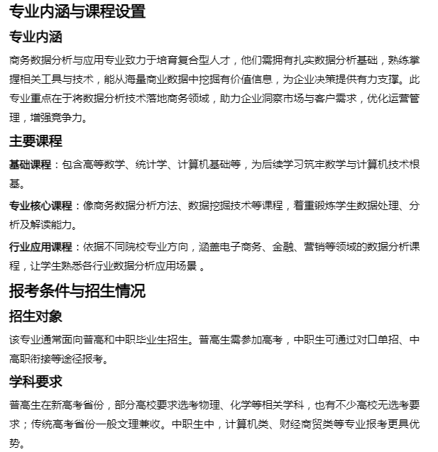 以下为你详细介绍商务数据分析与应用专业常见报考问题: