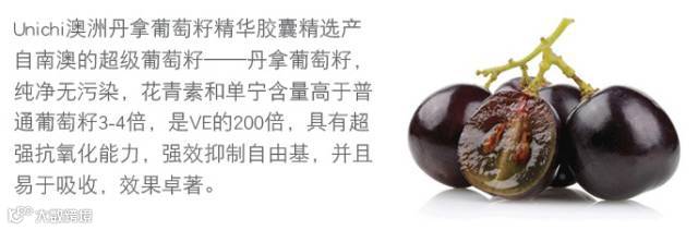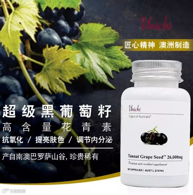 Unichi只精选南澳的丹拿葡萄籽生产出了Unichi丹拿葡萄籽精华胶囊(Unichi Tannat Grape Seed26,000mg),其原花青素含量和抗氧化能力远高于市面上的普通葡萄籽产品数倍。