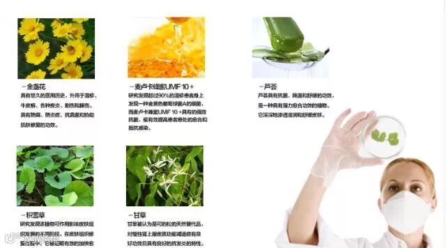麦卢卡蜜具有抗菌、抗病毒、消炎和防感染的特性。如:金色葡萄球菌感染。同时,麦卢卡蜜具有治疗和消肿的功效。含有椰浆,荷荷巴和维生素E,用时富含全天然脱臭茶树油。有机草药精华主要有:金盏菊,甘草,积雪草,芦荟,麦卢卡蜂蜜UMF 10+,硫磺, 漆树, 石墨等。