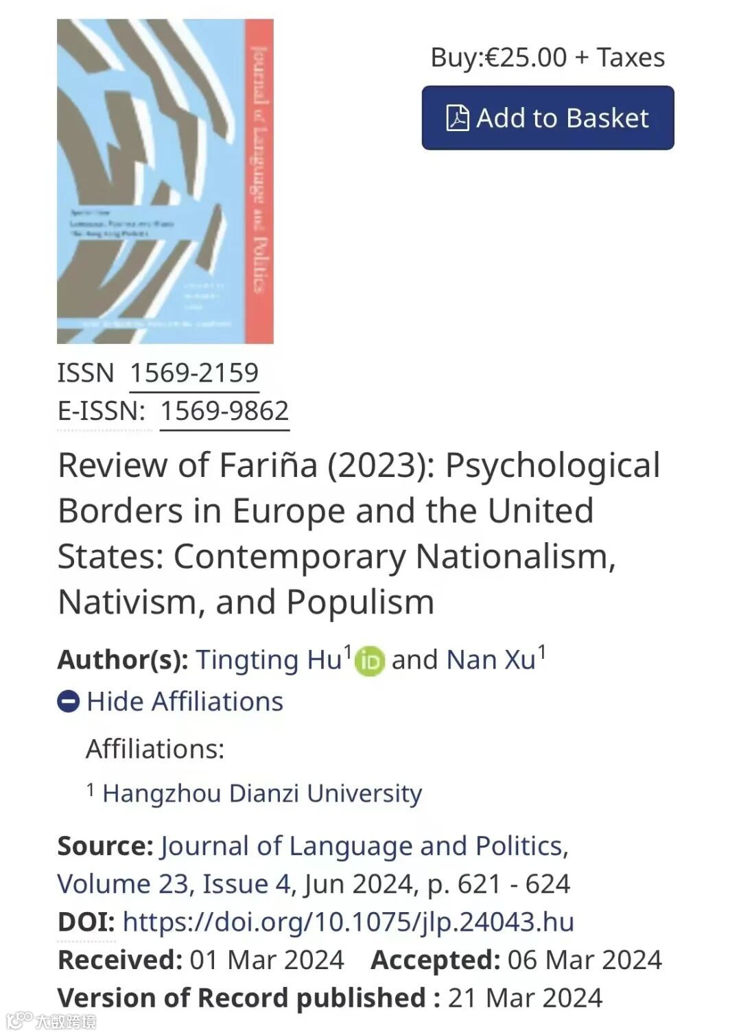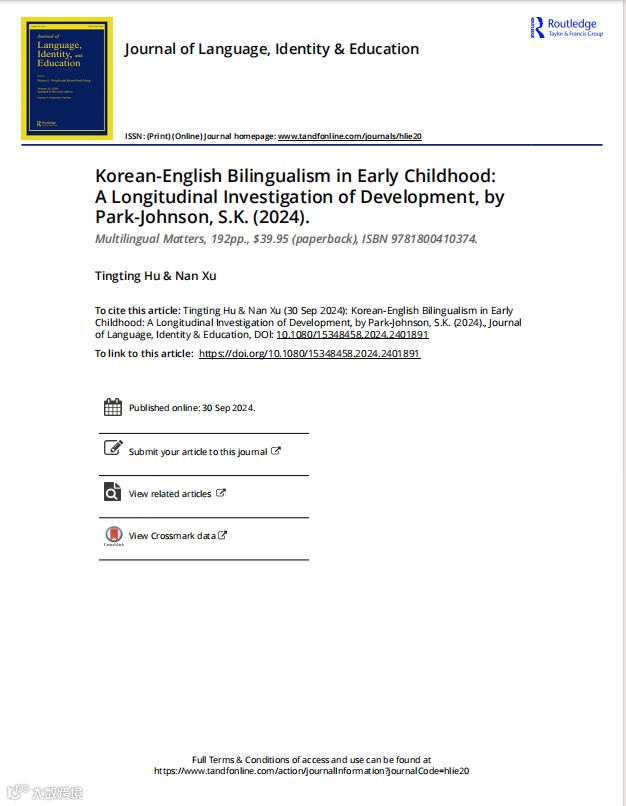 在SSCI期刊《 Journal of Language and Politics》《Journal of Language, Identity & Education》各发表1篇。