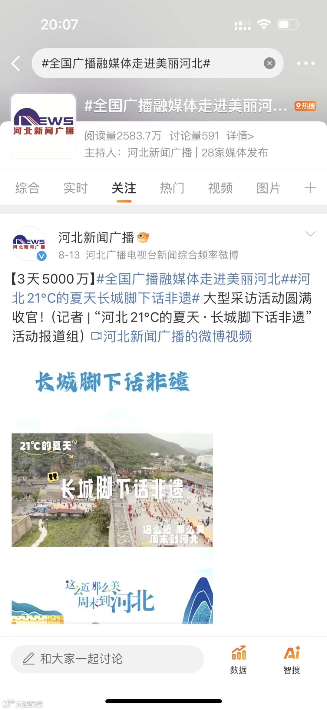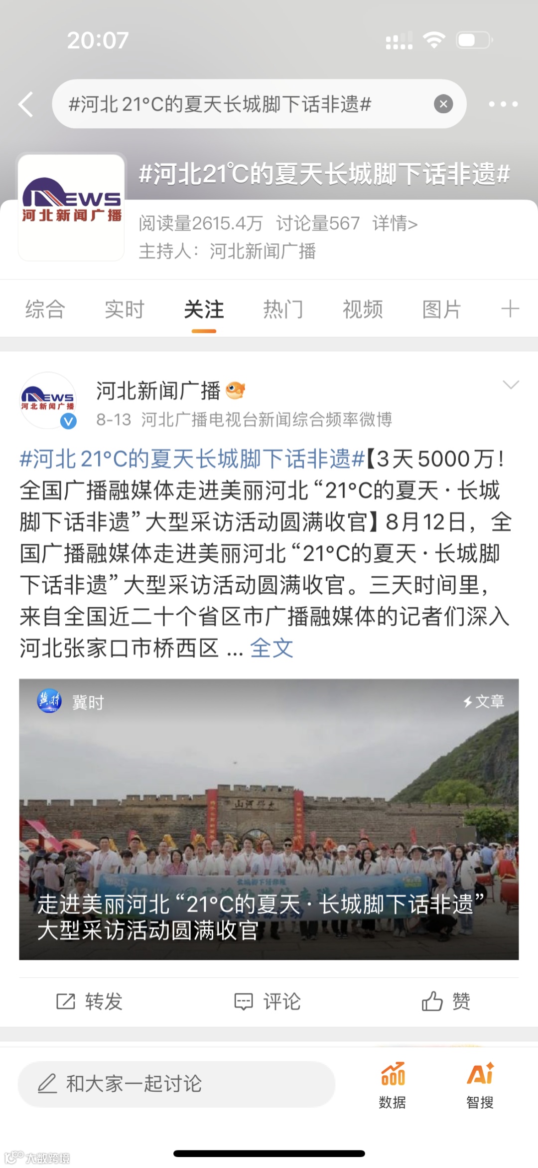8月份我们组织了全国广播融媒体走进美丽河北大型采访活动,沉浸式、体验式感受河北精品旅游线路和产品,领略河北文旅的独特魅力。