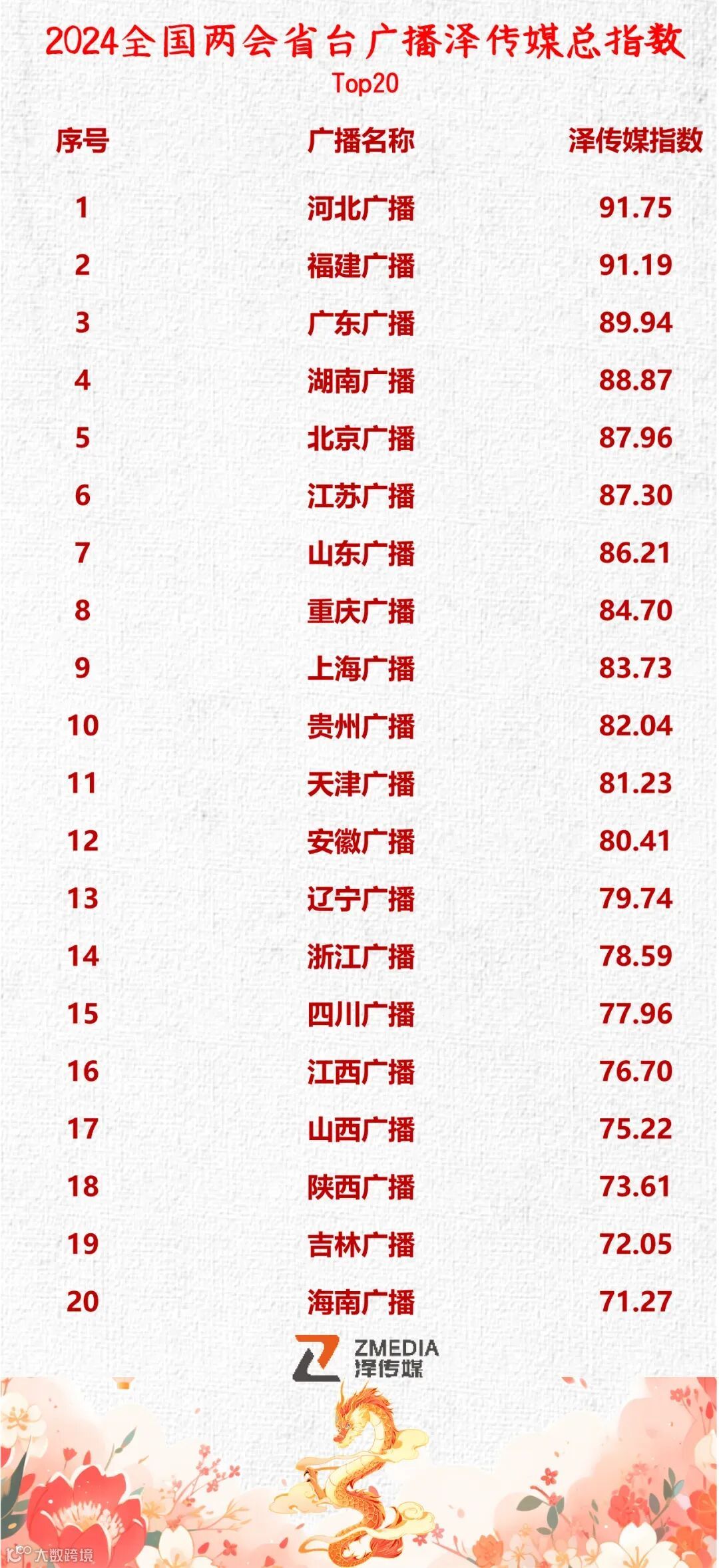 2024年,“河北广播”第八次蝉联“2024全国两会省台广播泽传媒总指数”排行榜榜首。河北新闻广播新媒体平台产生多篇破亿、破千万爆款。